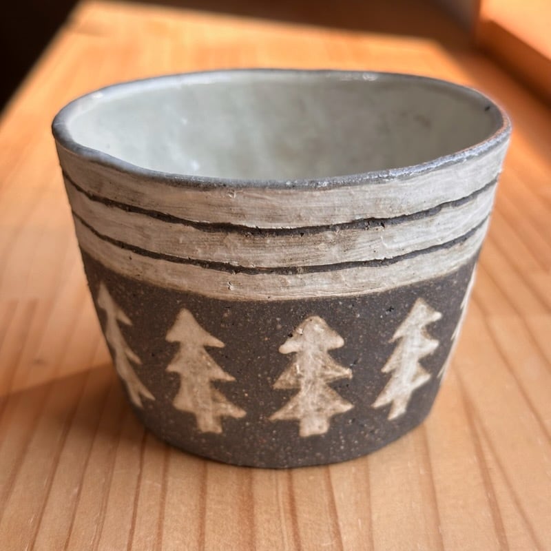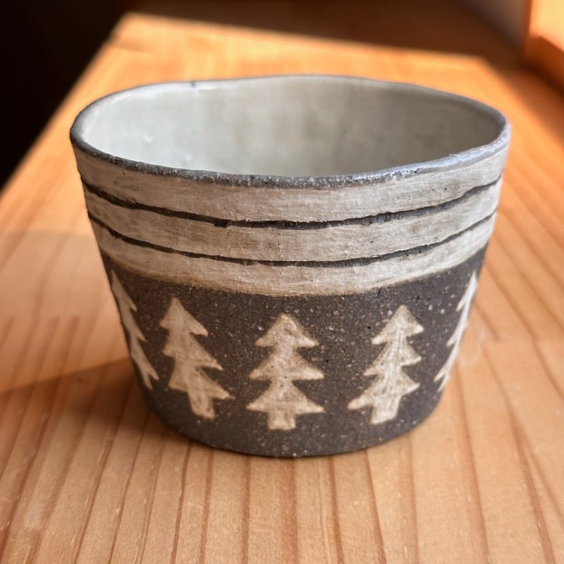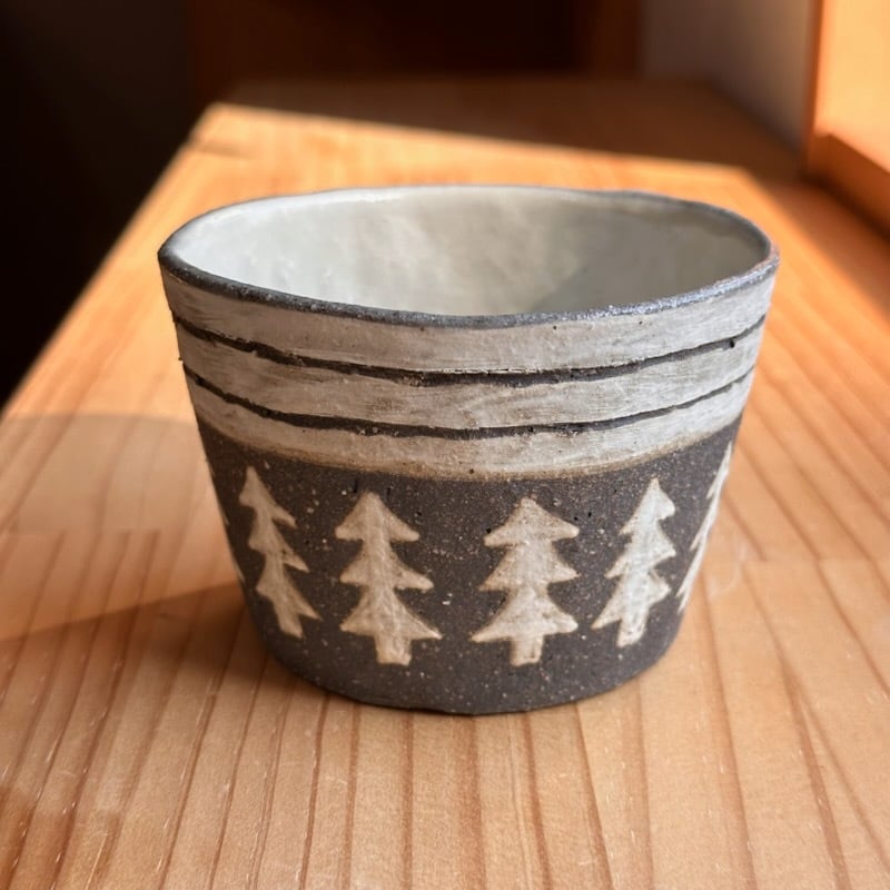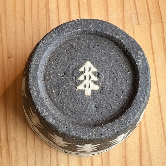 ・ザラッとした感じ(白、茶系、黒系の部分も)の箇所は化粧土を刷毛で塗っています。油染みには弱いため、ご使用になる前に水で一度洗ってから使っていただくか、お皿等は一枚ペーパーなどをひいてからお使いください。